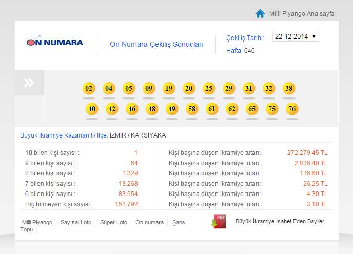On numara sonuçları 13 Aralık 2010